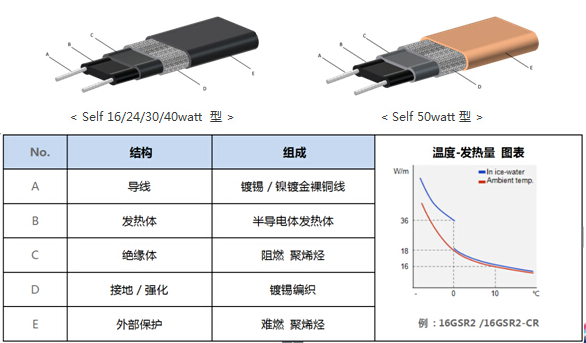 自控温电缆是具有 PTC(Positive Temperature Coefficient)特性的加热电缆。这款产品是以碳(Carbon)为半导体发热的并联电路结构。按照周围的温度变化,PTC材料自律的反应,发热量可自动调节;因此,使用者很容易进行系统控制及运用,有节能且延长使用年限的优势。而且,在现场内,可按照使用者要求的数量任意剪裁以及施工。从一般防冻到优化产业工序管理,应用广泛。 这款伴热产品具有安全性、自律性和经济性的优势;让您所栖身的地方都能感受到温暖!